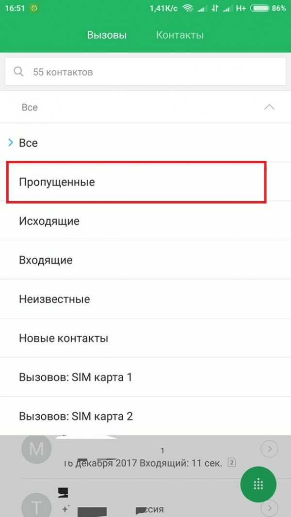 Где найти все пропущенные вызовы в Xiaomi Redmi note 3 pro?